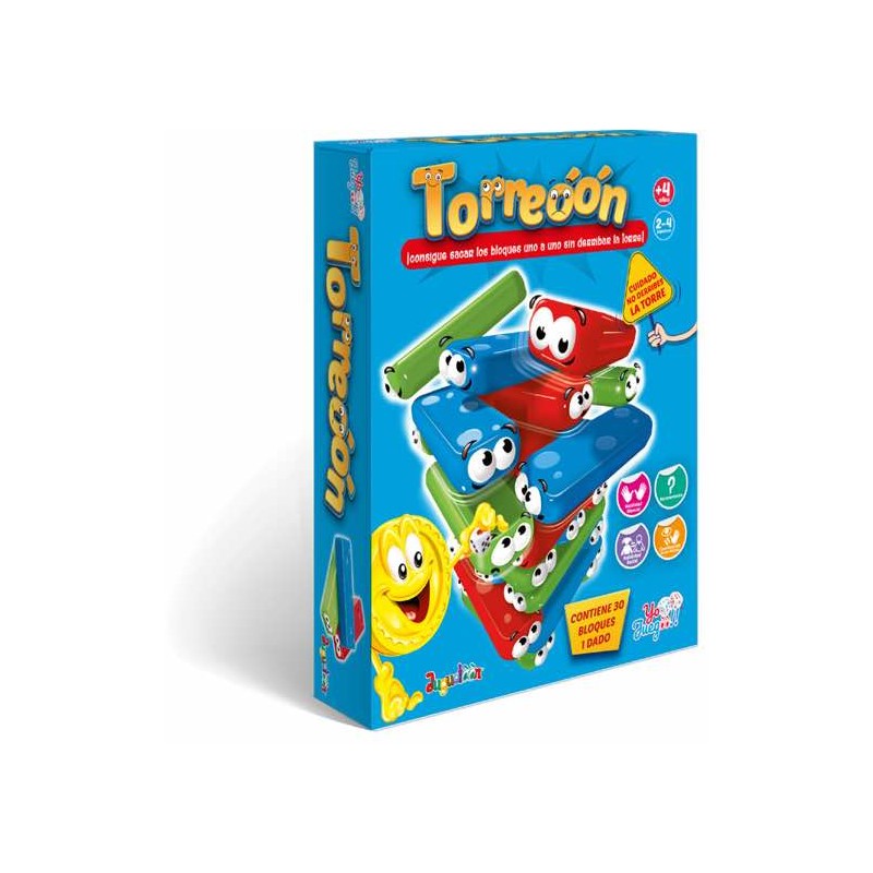 El juego de mesa Torreóón pertenece a la marca exclusiva Yo Juegoo de Juguetoon. Te lo pasarás en grande jugando al Torreóón con los amigos y con la familia. El juego consiste en quitar las fichas que forman la torre sin tirarla. Los peques desarrollarán la habilidad manual, social y la coordinación ojo-mano. Contiene 30 fichas y 1 dado. Juguetoon. Ref.: 007-26. Edad recomendada: +4 años.