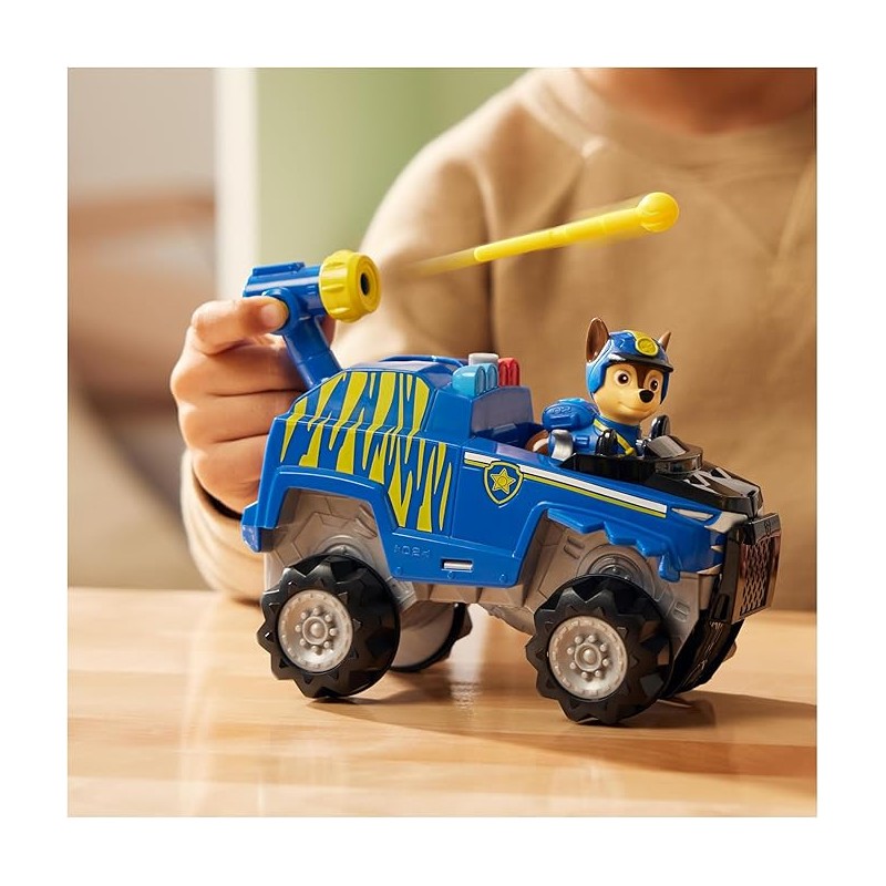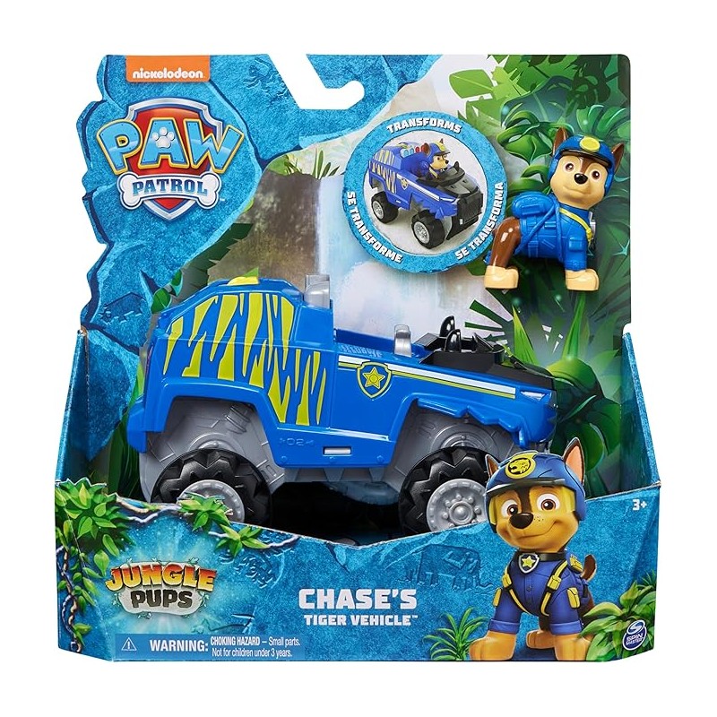 JUGUETES PATRULLA CANINA JUNGLE PUPS: ¡Recrea las emocionantes aventuras en la selva con tus personajes favoritos de la serie y vive la diversión en cualquier lugar COCHE TIGER TRANSFORMABLE: ¡Vive rescates apasionantes con Chase Patrulla Canina a bordo de su vehículo Tiger inspirado en un feroz tigre Baja la rejilla frontal para ver los colmillos del temible animal y pulsa el botón para que aparezca el lanza proyectiles y poder despejar cualquier obstáculo FIGURA CHASE PAW PATROL: Patrulla Canina Chase está preparado para enfrentarse a cualquier desafío con su uniforme de Jungle Pups, incluyendo el casco y detalles realistas ¡parece que haya salido de la pantalla ¡AVENTURA EN LA SELVA: Únete a Chase y a sus compañeros de Paw Patrol Jungle Pups (se venden por separado) en su increíble vehículo de rescate mientras se adentra en la peligrosa y misteriosa selva ¡rescata a los animales y ponlos a salvo del volcán y de otros peligros INCLUYE: 1 figura Chase, 1 coche Tiger Jungle Pups, 2 proyectiles