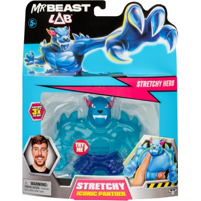 Presentamos el nuevo laboratorio MrBeast - ¡Héroes elásticos! Los héroes elásticos de MrBeast Lab miden 4.5 pulgadas de alto ¡Estíralos hasta tres veces su tamaño! ¡Aplasta para revelar sus rellenos ocultos! ¡Hay 3 héroes elásticos de laboratorio MrBeast para coleccionar