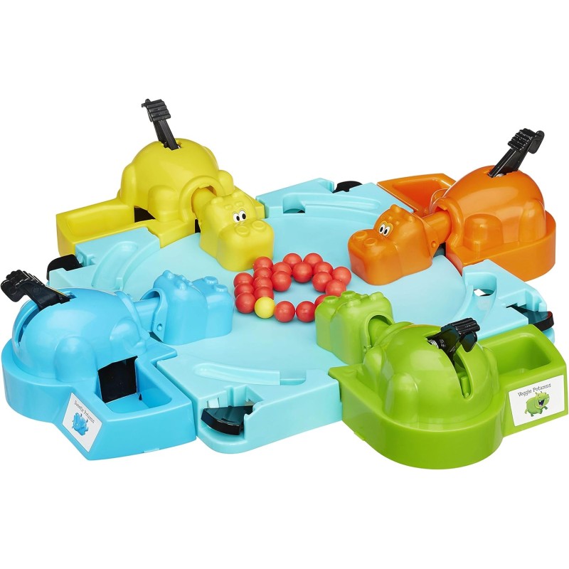ALMACENAMIENTO FÁCIL: Guarda las bolas en el práctico contenedor; para guardar el juego o llevarlo a todas partes, solo sube las palancas de cada hipopótamo y el juego cabrá de nuevo en su caja
