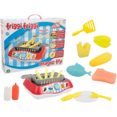Playset que favorece el juego simbólico y el juego de roles en el mundo real Invita a la diversión en la cocina, a aprender sobre comida y a comer de forma sana Los alimentos cambian de color mientras los cocinas Efecto realista de luz y color como una freidora de verdad Numerosos accesorios incluidos pilas: 4 AA no incluidas