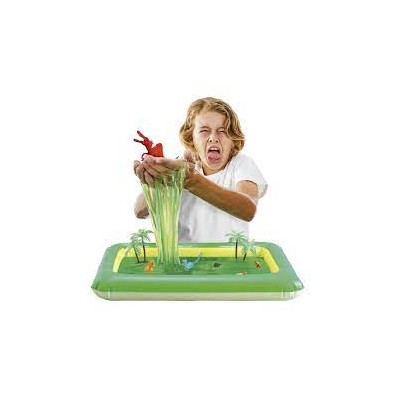 ¡Crea un mundo gelatinoso de aventuras en miniatura con Glibbi Slime Dino! Este pack Glibbi Slime Dino contiene 5 bolsitas de 10g de polvo Glibbi Slime verde, 8 figuras (entre dinosaurios y árboles) y una bandeja hinchable para jugar. Las medidas de las figuras y bandeja son: 4 dinosaurios de 11cm, 2 dinosaurios de 6cm, 2 árboles de 7cm y una bandeja de 50 x 37cm. Sólo tienes que inflar la bandeja y llenarla de agua, a continuación esparce el polvo Glibbi Slime en el agua y.. ¡a jugar! Después de jugar puedes desechar el Glibbi Slime por el inodoro o desagüe ¡no se obstruyen! ¡100% diversión segura durante el tiempo de juego, no irritante, y respetuoso con el medio ambiente! No contiene productos químicos dañinos, está dermatológicamente testado y es 100% biodegradable. Fantástico para el juego sensorial, la diversión y el aprendizaje. Recomendado para niños y niñas a partir de 3 años.