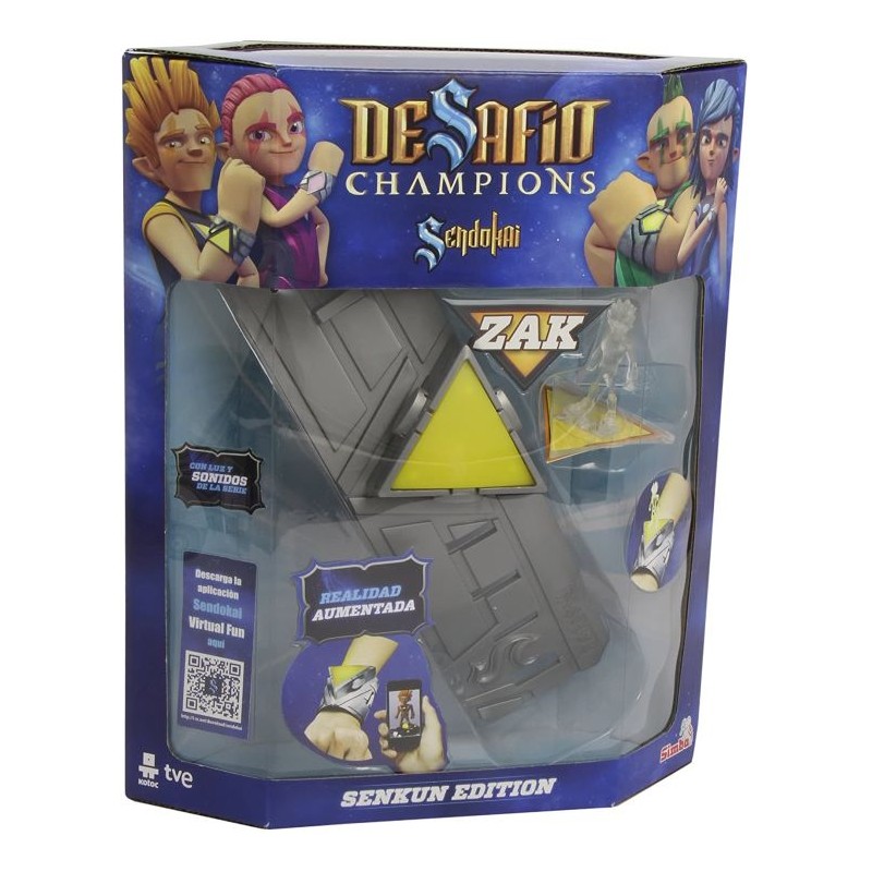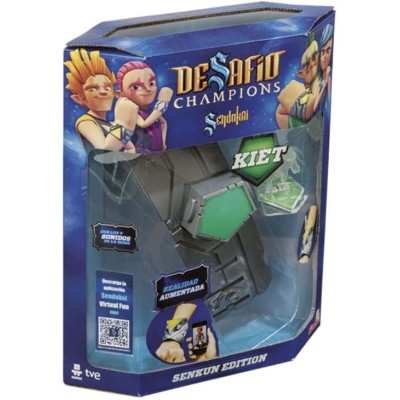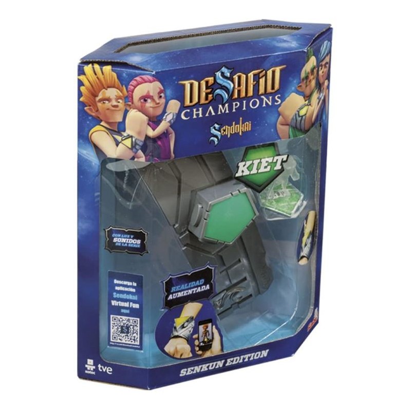 Brazalete del Desafío Champions Cuenta con una figura extraíble Permite jugar con realidad aumentada y reproduce frases y sonidos de la serie Incluye 6 frases de la serie Con luz y sonido Realidad aumentada, apunta al brazalete con tu móvil o tablet y observa lo que sucede… Incluye figura luminosa