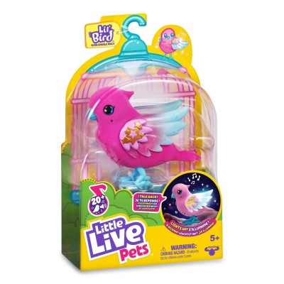 Descubre la nueva generación de tus pajaritos interactivos preferidos! ¡Pásalo en grande con este nuevo Little Live Pets Pájaro Parlanchín Serie 13 de Famosa! Hazte con estos preciosos pajaritos (se venden por separado) llenos de color, con nuevas alas que se iluminan al ritmo de todos sus soniditos. Cuanto más les acaricias, más cantan y se alegran, puedes incluso grabar mensajes para que los repita y así sorprender a todos tus amigos y familiares. Colecciona todos los Little Live Pets disponibles para multiplicar la diversión, entre ellos se comunican y se responden, hazte con las jaulas para jugar en espacios más especiales creados para ellos especialmente.