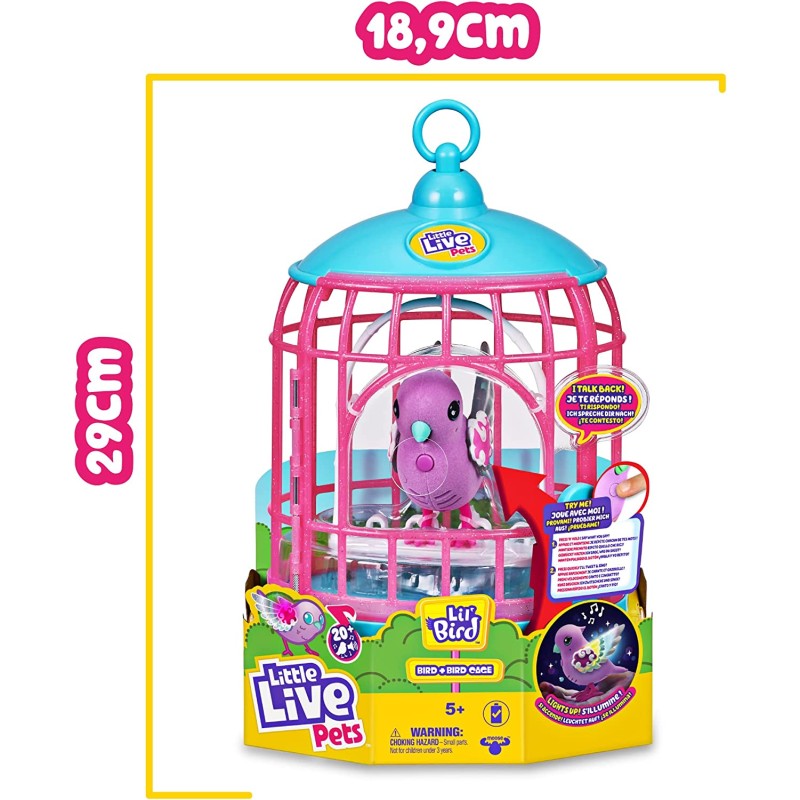 Este modelo viene en una preciosa jaula rosa para guardar a tu mascota y pajarito preferido; Necesita pilas, 2xAAA (no incluidas)