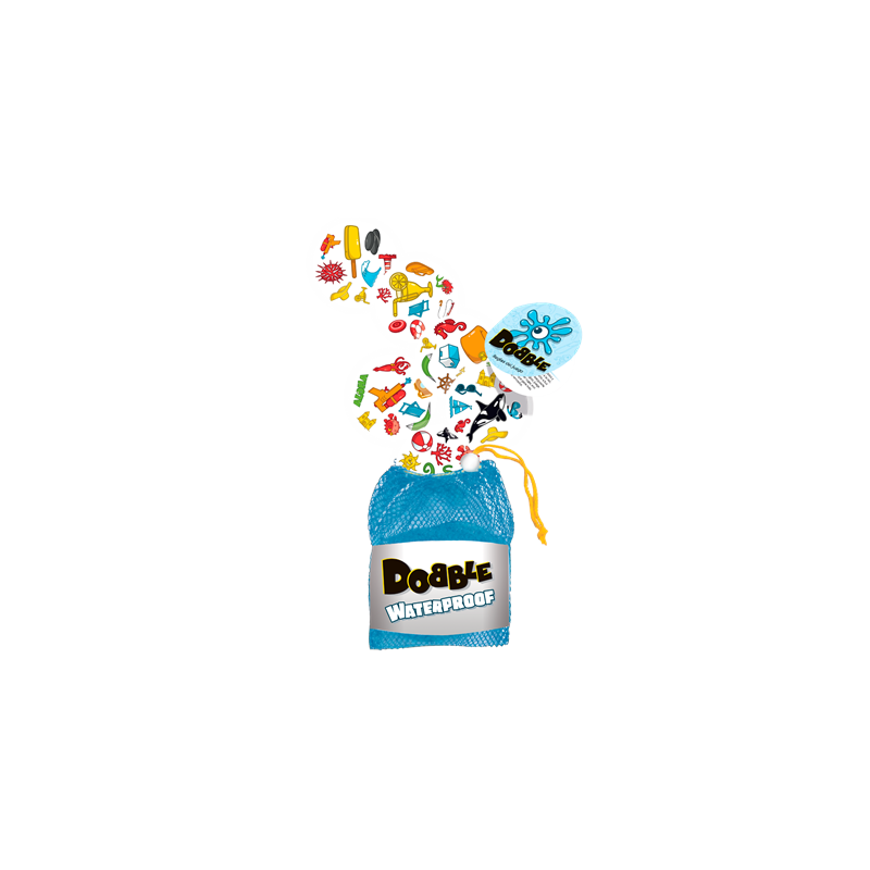 Dobble Waterproof es una nueva versión de este juego de cartas superventas, ahora con un nuevo diseño que te permitirá alargar las horas de diversión en la playa o en la piscina, ¡gracias a sus cartas resistentes al agua y su cómoda bolsa de transporte! Dobble es un juego con más de 50 símbolos y solamente un símbolo idéntico entre cada carta. ¿Serás capaz de descubrirlo? Busca el símbolo idéntico en dos cartas, dílo en voz alta y coge o deja una carta, según las reglas del mini-juego al que estéis jugando. Velocidad, observación y reflejos... ¡Encadena todos los mini-juegos en un ambiente delirante!