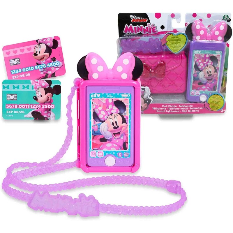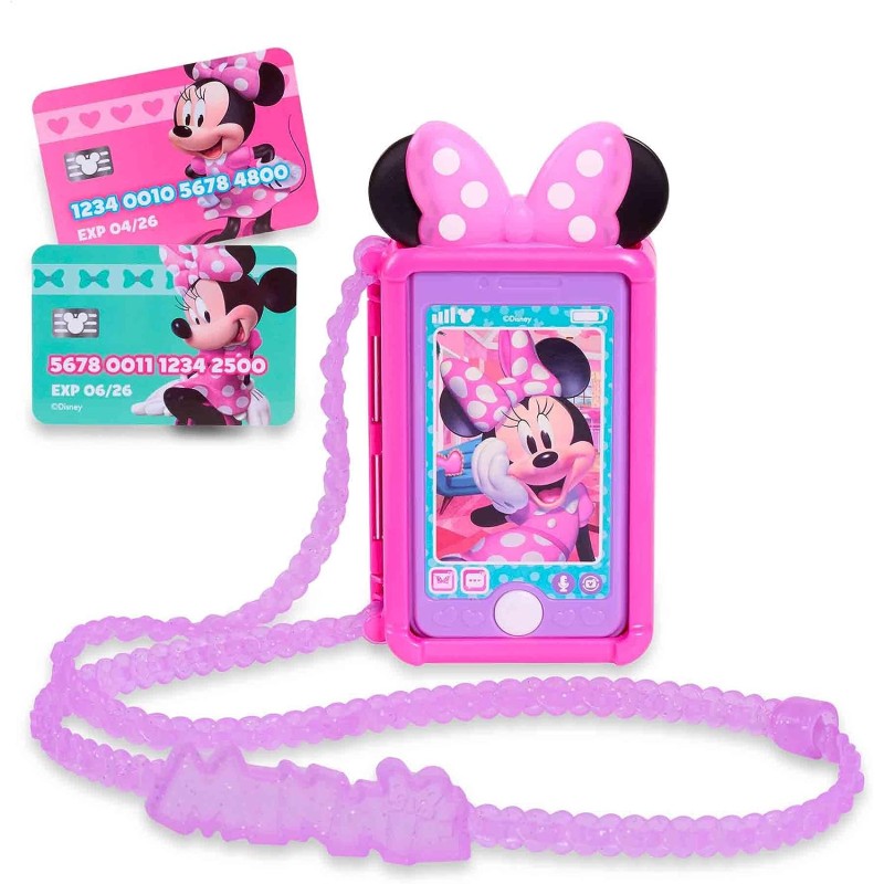 Además, incluye dos tarjetas de crédito de Minnie Mouse para jugar a las compras, que se pueden guardar en el mini bolso