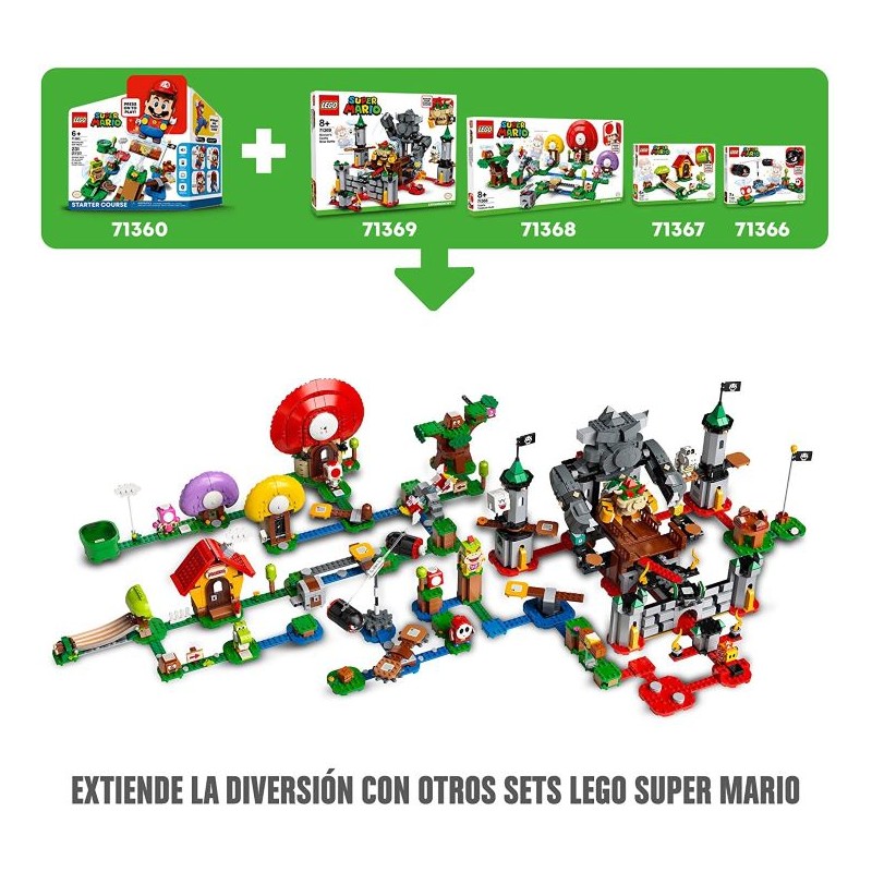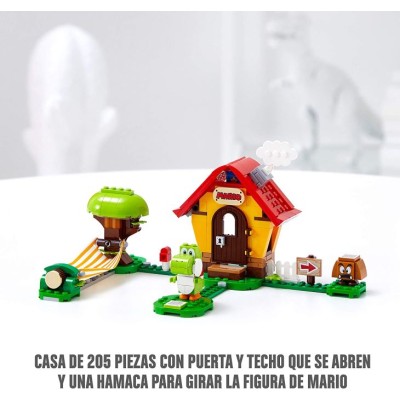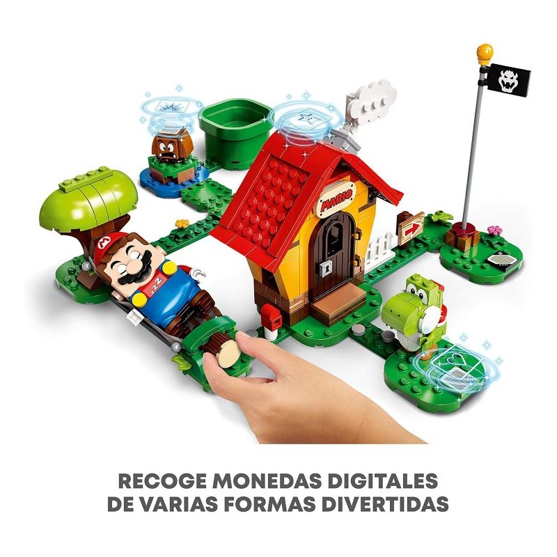 Los fans podrán enriquecer sus experiencias de juego LEGO Super Mario y disfrutar de toneladas de diversión creativa interpretando historias con el Set de Expansión: Casa de Mario y Yoshi. Este juego de juguetes para coleccionar contiene una casa construible con puerta abatible y tejado que se abre para descubrir debajo un bloque de superestrella. Óptimo como regalo para niños que tengan el set Pack Inicial: Aventuras con Mario, también cuenta con una hamaca para mecer a LEGO Mario (figura no incluida) hasta que se quede dormido, así como con figuras de juguete de Yoshi y un Goomba para interactuar con estos personajes y ganar monedas. Una app divertida La app gratuita LEGO Super Mario incluye herramientas de visualización que ayudan a construir este módulo y sugiere formas creativas de construir y jugar; además, ofrece una plataforma segura para que los niños compartan sus creaciones. Adecuados como ideas de regalo Los inspiradores juegos LEGO Super Mario traen al mundo real a un personaje favorito de toda la familia. El pack inicial, los sets de expansión y los packs potenciadores son divertidos juguetes de regalo LEGO para peques creativos y fans, que podrán crear sus propios desafíos exclusivos, competir con amigos o jugar a solas.