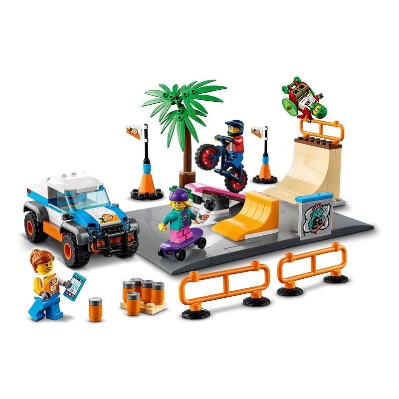 El juguete LEGO City Pista de Skate (60290) contiene todo lo que un niño necesita para organizar emocionantes eventos de patinaje, como una rampa de cuarto de tubo, una pendiente, un balancín y una barandilla. Los peques también podrán ampliar este juego para crear su propia ciudad con la base de carretera incluida. Además, con las minifiguras de un piloto de BMX, un atleta en silla de ruedas y un patinador que completan el lote, ¡el espectáculo y la diversión que harán vibrar al público durante horas están garantizados!