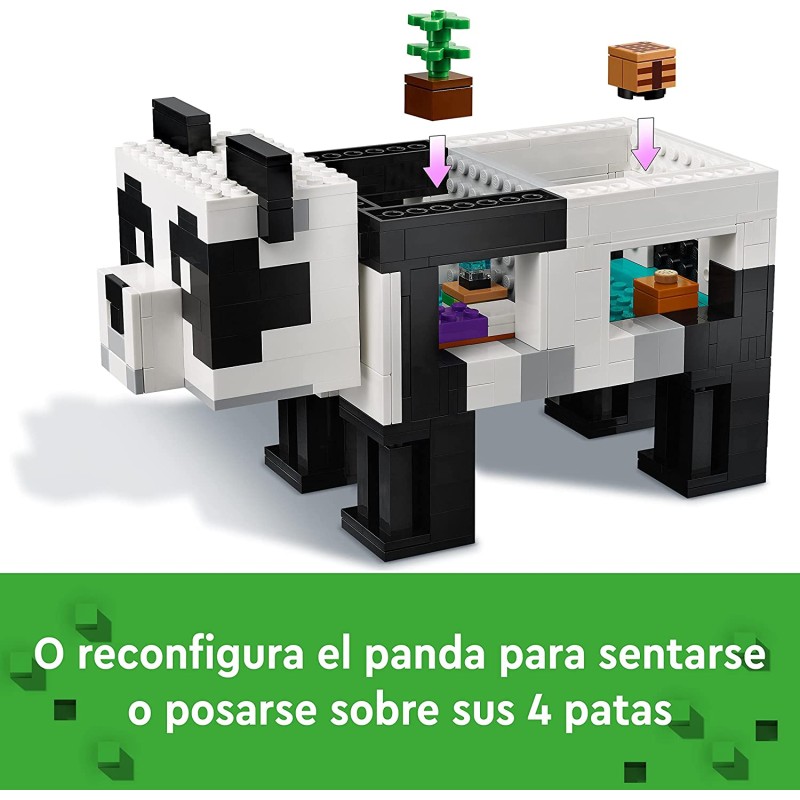 Este set cuenta con una casa de juguete para construir de 3 pisos inspirada en los osos panda de Minecraft, con habitaciones y extremidades articuladas que permiten que se mueva como un animal de verdad
