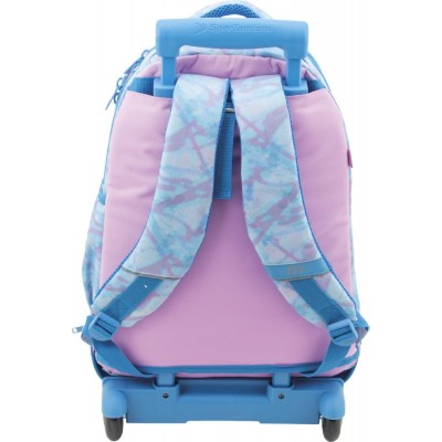 Medidas (cm): 34,5x44,5x23 Mochila escolar con carro desmontable. 2 usos en 1: el uso de Carro fijo de base resistente y el otro uso de solo mochila, pues se puede separar del carro a traves de la cremallera que los une. Tiene dos compartimientos amplios y un bolsillo frontal con un organizador interno. Tirantes ergonómicos de espuma transpirable con velcro al final que se adhieren al espaldar para que no se arrastren por el suelo. Bolsillo en el lateral derecha para llevar una botella . Asaacolchada de agarre superior. Cuenta con un forro escondido en la parte posterior de la mochila para cubrir las dos ruedas y así evitar que se ensucie la espalda.