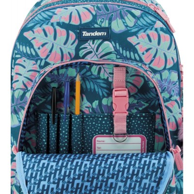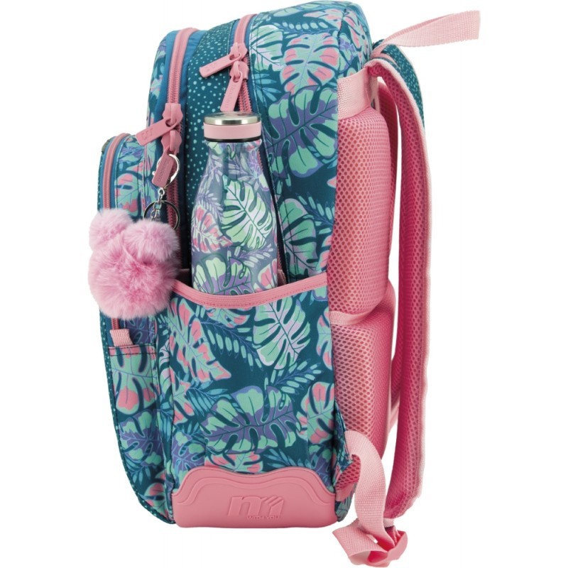 Mochila escolar de gran capacidad y doble cuerpo. Mochila con refuerzo extra en la base gracias a sus cantoneras de PVC personalizadas con la colección. Bolsillo frontal con organizador para bolígrafos y llaves. Etiqueta para marcar el nombre del propietario. Cremalleras más gruesas en los bolsillos principales, que aportan una mayor calidad. Adaptable a carro gracias a su banda acolchada. Espalda y tirantes ergonómicos con acolchado extra y material transpirable. Regalo de un candado con combinación.