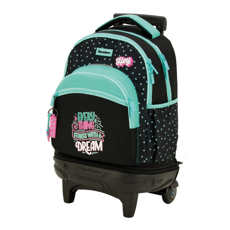 2 usos en 1: Toda la resistencia y durabilidad de un carro fijo pero ahora desmontable para que puedas usarlo también como mochila y lavarlo cuando quieras. Ruedas grandes con rodamientos todoterreno y un sistema antivuelco. Base rígida resistente. Mochila escolar con cremallera especial más gruesa y un organizador interno. Cuenta con tirantes ergonómicos de espuma extra transpirable. Cubre ruedas para no mancharse. Bolsillo lateral para botella. Cinta de agarre superior y cremallera de unión inferior.