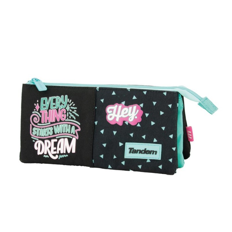 Estuche portatodo con tres cuerpos principales y dos bolsillos planos, para organizar y clasificar todo a la perfección.