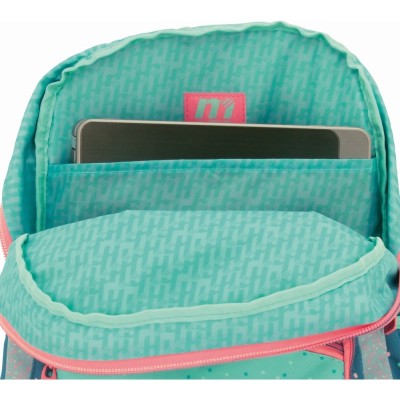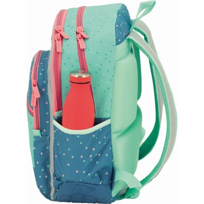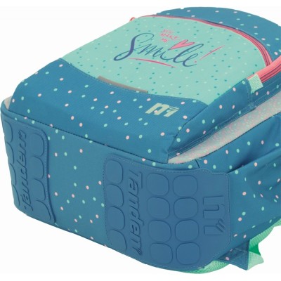 Mochila con refuerzo extra en la base gracias a sus cantoneras de PVC personalizadas con la colección.