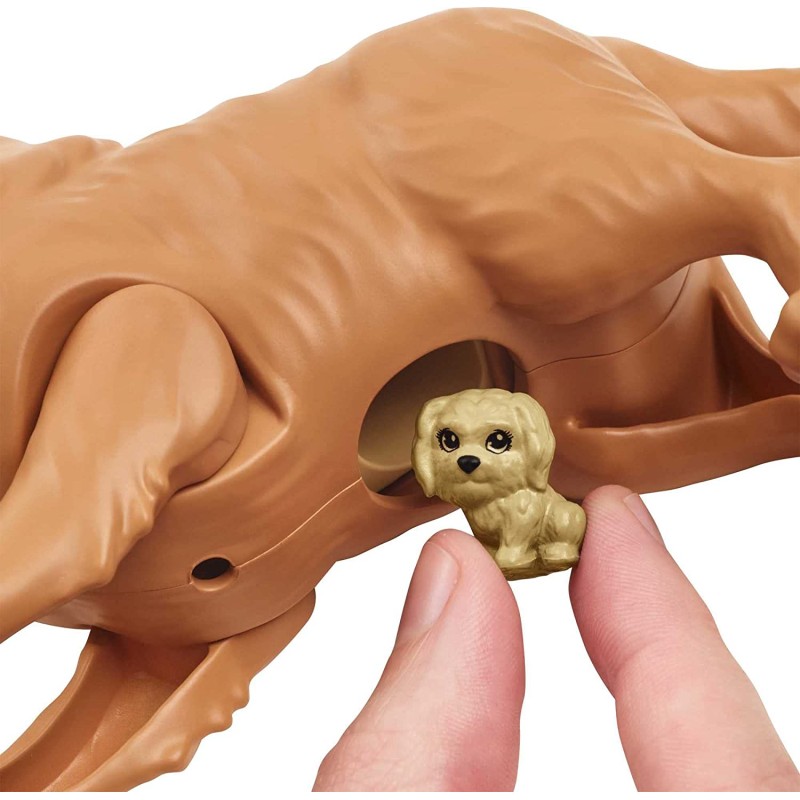 BARBIE TRAE AL MUNDO A LOS CACHORROS al presionar la espalda de la mamá. Cuando los cachorros hayan nacido, hay que limpiarlos con agua fría para revelar una marca de nacimiento única en cada uno.