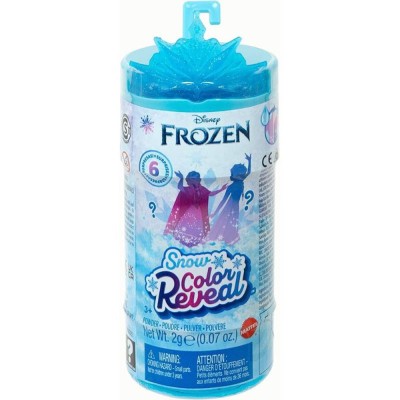 Este surtido de muñecas pequeñas de Disney Frozen ofrece un montón de emocionantes sorpresas al abrir la caja. A los fans les encantarán estas muñecas Color Reveal™ con temática invernal, pero qué personaje les tocará? Cada muñeca es un misterio hasta que se añade agua y se activa el compuesto que simula ser nieve que desvela el personaje. Se incluyen cinco sorpresas más para que abrir la caja sea aún más divertido: un adorable personaje y 4 accesorios más, ¡incluida una capa y un anillo para los peques! Las muñecas se venden por separado y están sujetas a disponibilidad. Las muñecas no pueden tenerse en pie por sí solas. Los colores y la decoración pueden variar.