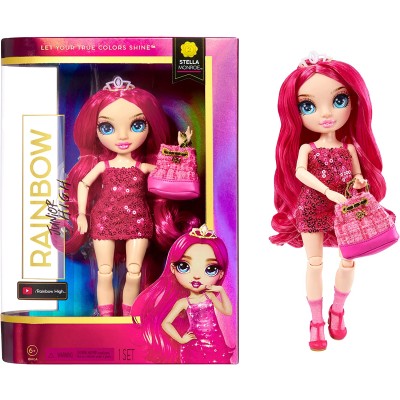 CONOCE A STELLA - Stella Monroe viene vestida de FUCSIA de pies a cabeza. Su rostro es joven, viene con ropa llena de detalles, pelo largo, liso y fucsia, largas pestañas y ojos de cristal.