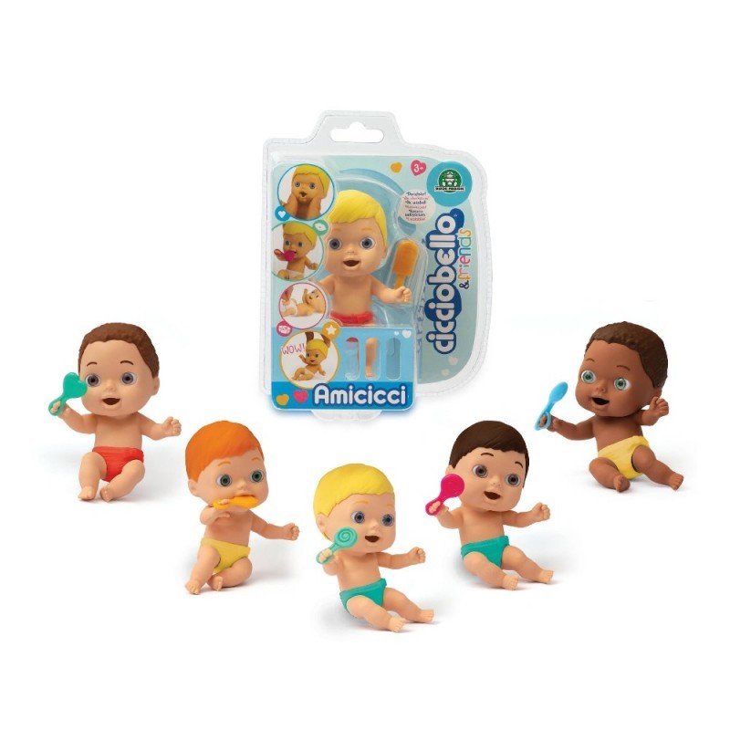 Los cicciobello Amicicci son pequeños bebés suaves y su cabeza balancín, hacen movimientos y tienen muchas expresiones divertidas. Irás descubriéndolo presionando sus mejillas o la barbilla. Muchos otros accesorios incluidos: un sonajero, una pelota, una alfombrilla de puzle. Precio por unidad.