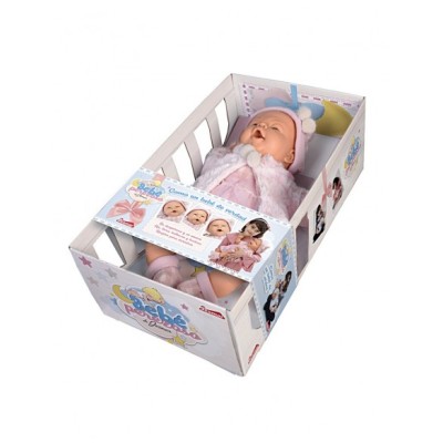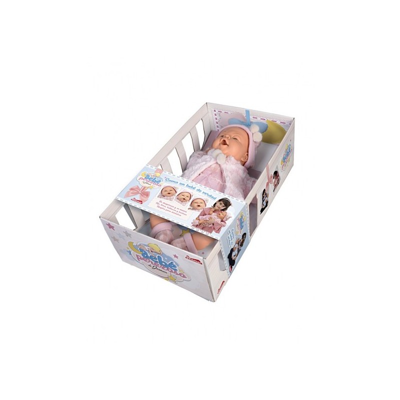 Bebé perezoso niña, una muñeca con mecanismo. Preciosa y dulce bebé perezosa, es niña y mide 48 cm. La muñeca abre y cierra la boca. Sonido de bostezar, bosteza y respira casi de forma natural para dormirse. Se mueve desperezándose. Si la levantas ríe, balbucea y si lo acuestas hace sonido de dormir. La verás tan natural como una de verdad. Funciona con pilas 3 pilas R6. NO incluidas.