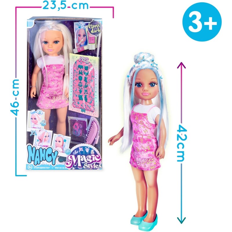 Nancy mide 42cm de altura, lo que la convierte en una compañera óptima para jugar y peinar