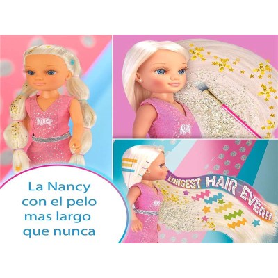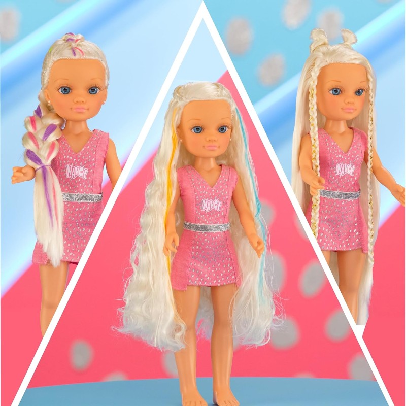 Esta es la Nancy más atrevida hasta la fecha, ¡con el pelo súper largo y lleno de posibilidades! La muñeca Nancy, Súper Melena (NAC47000) es una nueva muñeca con melena extra larga, con la que podrás crear una infinidad de peinados nuevos y sorprendentes. ¿Listo para dejar volar tu imaginación? Este set viene equipado con todo lo necesario para cuidar y peinar el cabello de Nancy. El juguete incluye un cepillo especial para desenredar su melena, varias mascarillas capilares para mantener su pelo largo suave y brillante; y varios accesorios de decoración para el pelo que incluyen purpurina y diversos estampados para ponerle el pelo de colores y con dibujos, para añadir un toque de diversión y estilo. Podrás experimentar haciendo peinados a tu muñeca con trenzas, coletas, rizos y todo lo que se te ocurra.