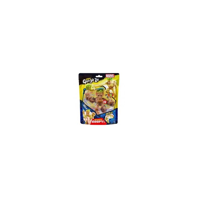 ¡Tus personajes de Marvel favoritos se han convertido en Heroes of Goo Jit Zu! ¡Super pegajoso Groot Marvel Hero con un relleno único de hojas verdes! ¡El cuerpo de Groot se estira 3 veces su tamaño y vuelve a su forma original! También disponibles: Hulk, Spider-Man, Black Panther, Venom y Iron Man en formas que nunca antes habías visto. ¡Una nueva forma de jugar y salvar el día con estos geniales juguetes coleccionables!
