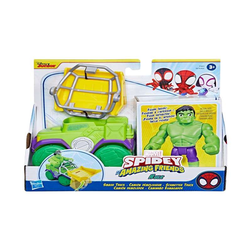 SET DE FIGURA Y VEHÍCULO: ¡Salta a la acción con Hulk y su impresionante Camión Demoledor! A los preescolares les encantará recrear escenas de Spidey y sus increíbles amigos con este divertido juguete
