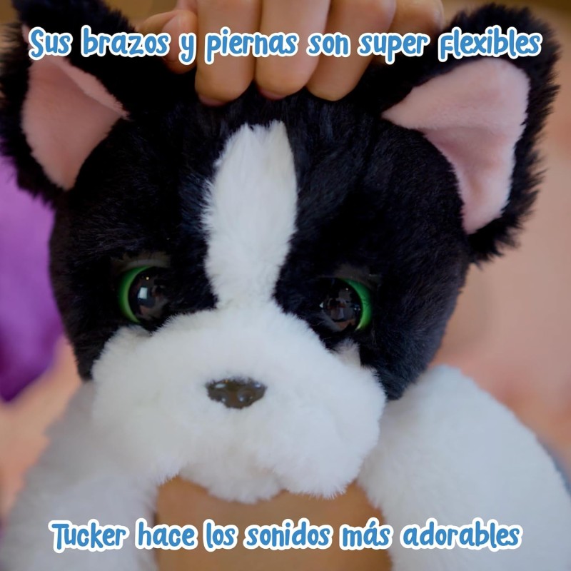 Tucker es el cachorro más achuchable, cómodo y tierno que se duerme cuando interactuas con el. Acaricia su espalda, tocale sus orejitas o hazle cosquillas en su vientre. Si acaricias justo en el lugar correcto sus grandes ojos se cerrarán lentamente mientras se duerme suavemente. Tucker hace los sonidos más adorables. Sus brazos y piernas son suaves y fl exibles, ayudandole a dormir en cualquier posición... ¿Hay algún lugar en el que no duerma?