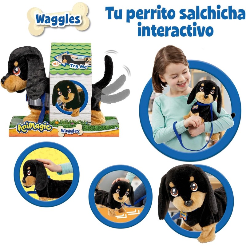 Ideal para abrazos, este Waggles es el amigo imprescindible de los niños. ¡Y no olvides la correa incluida para paseos aún más realistas!