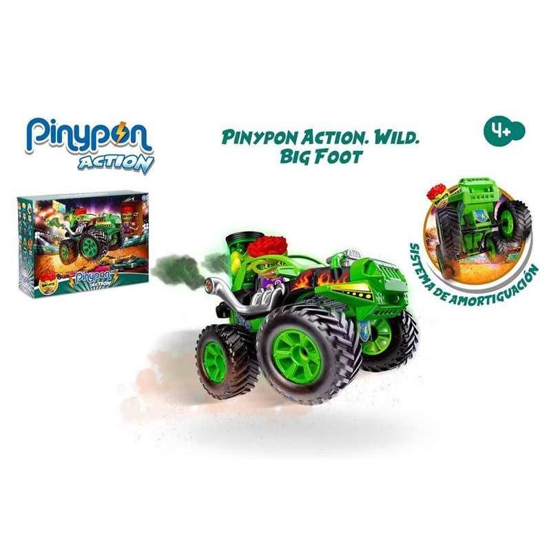 Las acrobacias más arriesgadas y sorprendentes solo son posibles con el nuevo pack Pinypon Action Wild Big Foot de Famosa! ¡El pack más loco y emocionante hasta le momento! Consigue este fantástico pack que incluye un impresionante vehículo de grandes ruedas, preparado para las acrobacias más frenéticas y sorprendentes. Ayuda al valiente piloto a montar el show más genial gracias a los accesorios incluidos y el resto de juguetes que tengas por casa. ¡Las aventuras con Pinypon no tienen límites!