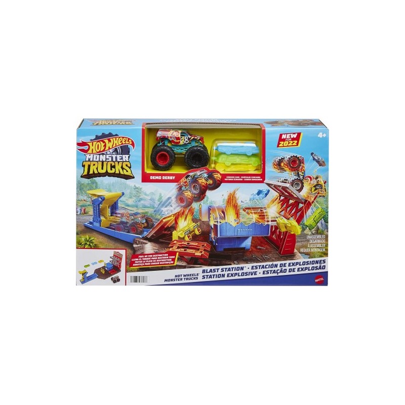 Entrena para una destrucción épica con la Monster Truck Blast Station de Hot Wheels, que lleva a un nivel incomparable los choques y aplastamientos.