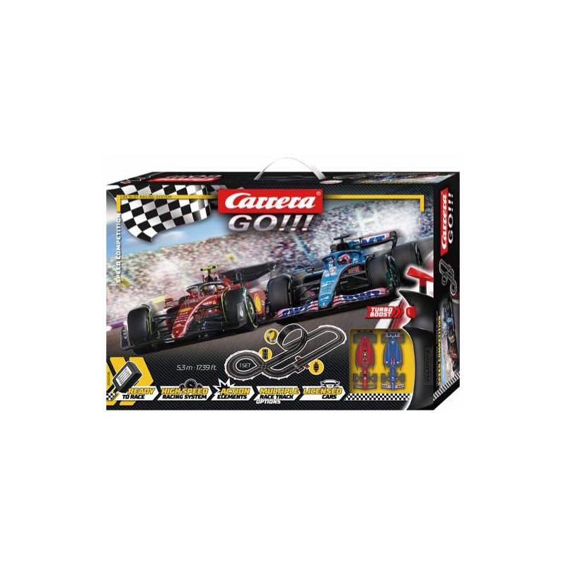 PREPARADOS PARA EL COMIENZO TODOS LOS DÍAS Despega en tu propia casa con los coches de carreras de Fórmula 1 llenos de acción Carrera IR. Serie: desde el Ferrari de Vettel y el Mercedes de Hamilton hasta el Audi RS 5 de Rockefeller y Müller, hay algo para todos