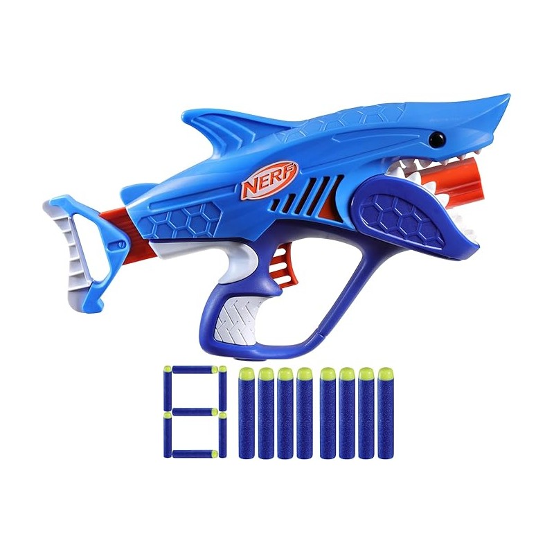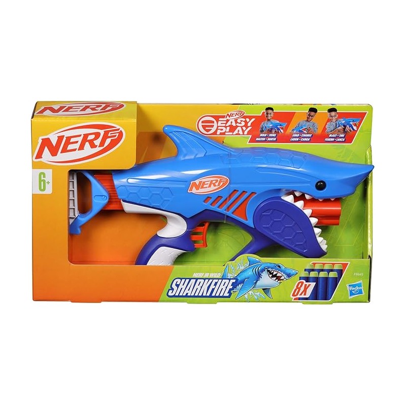 LANZADOR FÁCIL DE USAR NERF JUNIOR WILD SHARKFIRE: El lanzador Nerf Junior Wild Sharkfire cuenta con un fantástico diseño de tiburón para encender el juego imaginativo