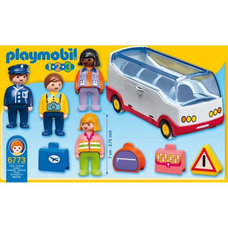 Diversión para los más pequeños: PLAYMOBIL Autobús con figuras y accesorios realistas, contiene piezas grandes idóneas para manos pequeñas - 4 figuras, 1 autobús y multitud de accesorios - Juego adecuado para niños a partir de 18 meses. Óptimo para las manos de los niños gracias a su tamaño adaptado y fácil sujeción gracias a sus bordes redondeados - Para jugar a diario: incluye instrucciones para montarlo con ayuda de los padres. Diseño robusto y de alta calidad. Limpieza de las piezas (sin pegatinas) con agua corriente y sin químicos - Contenido: 1 PLAYMOBIL Autobús, Juego de 9 piezas con instrucciones: 3 figuras y muchos accesorios, material: plástico, LxPxA: 20 x 8 x 9 cm, 6773.