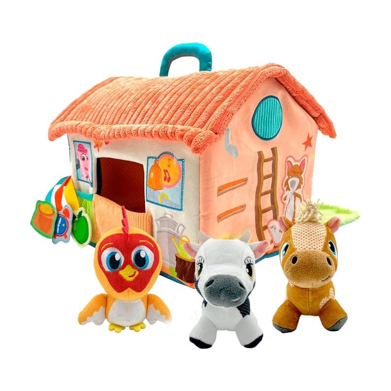 Granja maletín de Peluche con diferentes texturas y accesorios para no parar de jugar