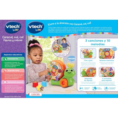 DISEÑO INTERACTIVO – El caparazón gira mientras el caracol se mueve, activando alegres canciones, melodías y efectos luminosos para captar la atención de los más pequeños.