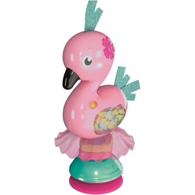 FANCY FLAMINGO SHAKE & PLAY: un simpático sonajero en forma de flamenco para estimular al bebé con melodías, efectos sonoros y bolas de colores, con una ventosa para acompañar la papilla; ideal para desarrollar la coordinación mano-ojo y el tacto