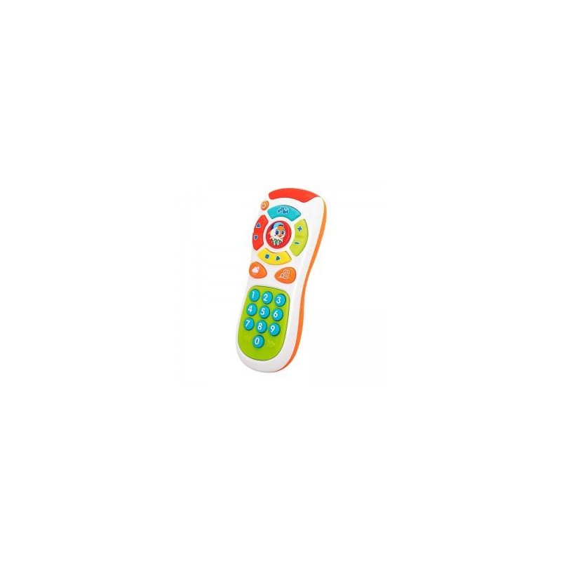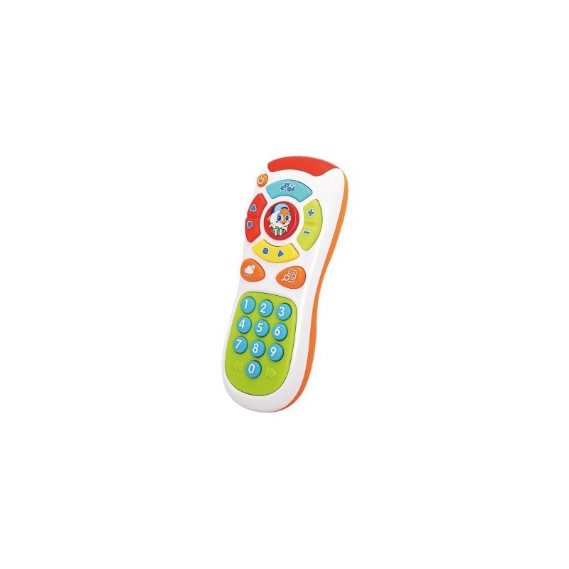 Este es nuestro Mando Interactivo Infantil. Es de color blanco, azul, verde, naranja, rojo y amarillo. Con él, tu peque podrá escuchar diferentes sonidos, darle más o menos volumen, aprender los números, música, ¡y muchas cosas más!. Este Mando interactivo ayudará a que desarrolle su sentido auditivo al mismo tiempo que aprende y se divierte. Pilas no incluidas.
