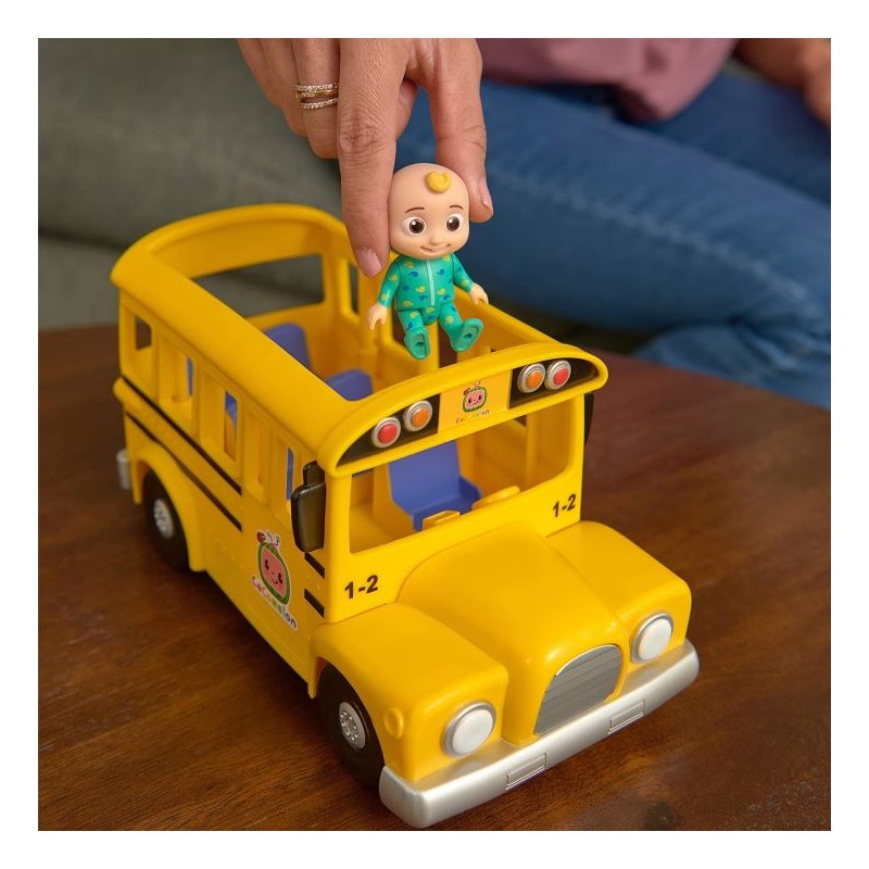El Autobús Musical del cole de Cocomelon es uno de los productos más aclamados y divertidos del exitoso canal de YouTube. Está inspirado en la icónica canción popular “The Wheels on the bus go round and round” con más de 2 mil millones de reproducciones en YouTube. Lo que lo convierte en uno de los elementos más emblemáticos y reconocidos del universo Cocomelon. El autobús musical del cole mide 23 cm, y activa la famosa canción presionando la parte frontal del vehículo. Además, incluye una Figura articulada de 5 cm de su personaje principal, el bebé JJ. El vehículo dispone de 5 asientos y es compatible con el Pack de 4 Figuras Cocomelon para una experiencia de juego más completa. Es un producto para estimular la psicomotricidad gruesa, el lenguaje y la coordinación, tan importantes en las primeras etapas del desarrollo de los niños.