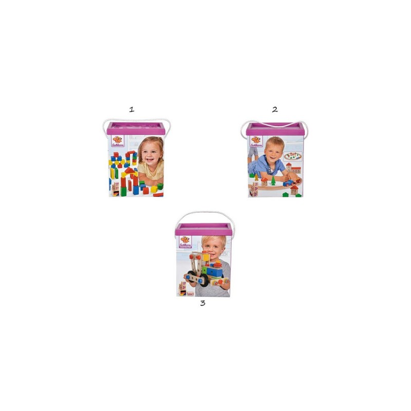 Los bloques de madera siempre han sido los juegos de construcción favoritos de los más peques. Ahora podrás elegir entre estos cubos de bloques de la mejor calidad. Podrás elegir entre 3 modelos diferentes: 1. Cubo con 100 piezas de madera. 2. Cubo con 25 piezas de madera para construir tu pista de tren. 3. Cubo con 100 piezas para construir distintos vehículos. Cuando estés realizando tu pedido, elige qué modelo deseas recibir.