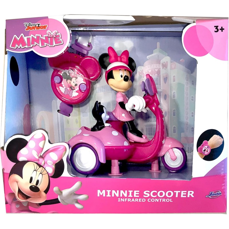 La moto scooter lleva dos figuras, Minnie y su gato (no extraibles) Minnie conduciendo y su gato en el asiento del sidecar