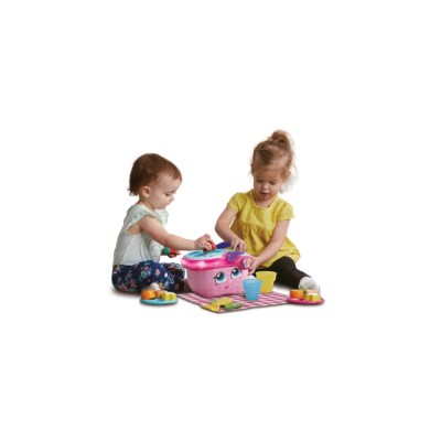 Con la Cesta Picnic descubre formas, colores con diferentes tipos de comida. La tapa interactiva de la cesta reconoce la comida por su forma y color. ¡Levanta la tapa de la cesta para escuchar música y divertidos efectos de sonido! Contenido: 16 piezas que incluye 8 alimentos, 2 platos, 2 tenedores, 2 vasos 1 mantel y 1 cesta. Medidas: 35 × 20 × 18 cm. Cefa. Ref.: 914. Edad recomendada: +6 meses.