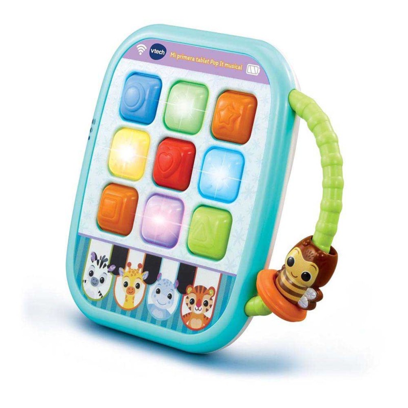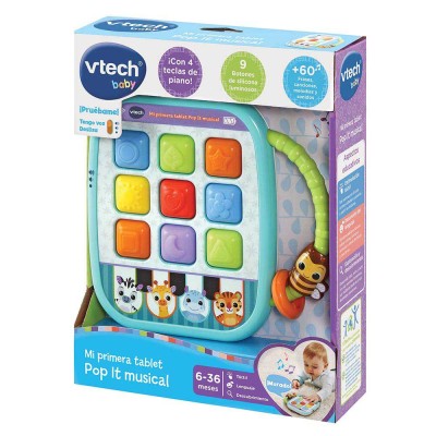 Cada uno de los nueve botones de formas se iluminará y parpadeará mientras presenta colores, formas, sonidos divertidos y melodías.