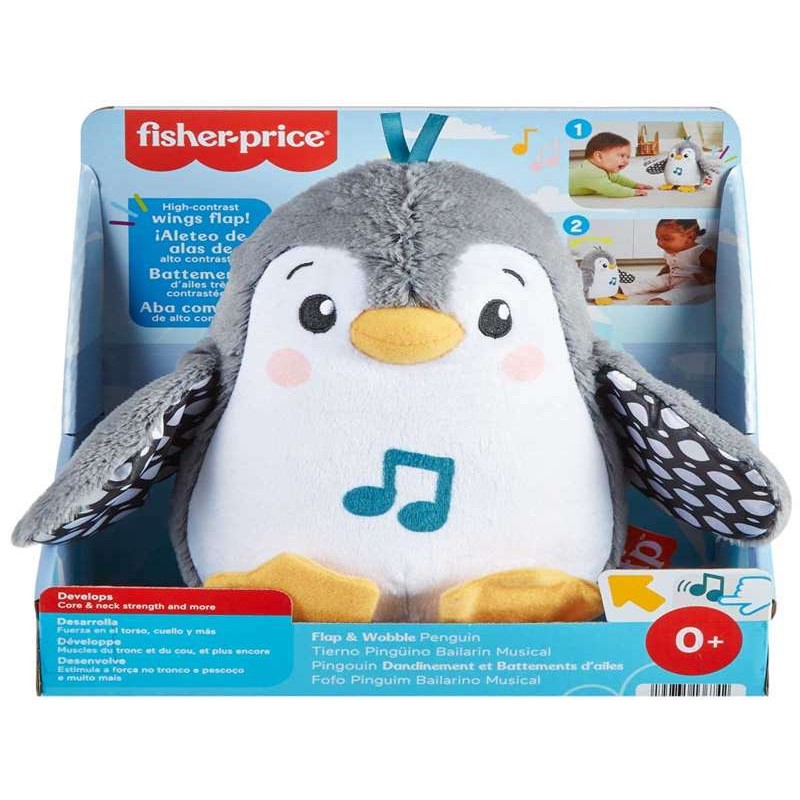 El tiempo boca abajo es un buen momento con el juguete musical de peluche Fisher-Price Flap & Wobble Penguin. Este simpático juguete boca abajo responde al toque de tu bebé con divertidos movimientos de aleteo y música. A medida que su bebé crece, la base regordeta del pingüino anima a su pequeño a sentarse y golpear a su amigo para obtener más melodías divertidas y una acción tambaleante y aleteante. Los patrones en blanco y negro de alto contraste, la tela de felpa suave, los pies arrugados y la música divertida ayudan a fomentar el desarrollo de los sentidos visuales, táctiles y auditivos de su recién nacido.
