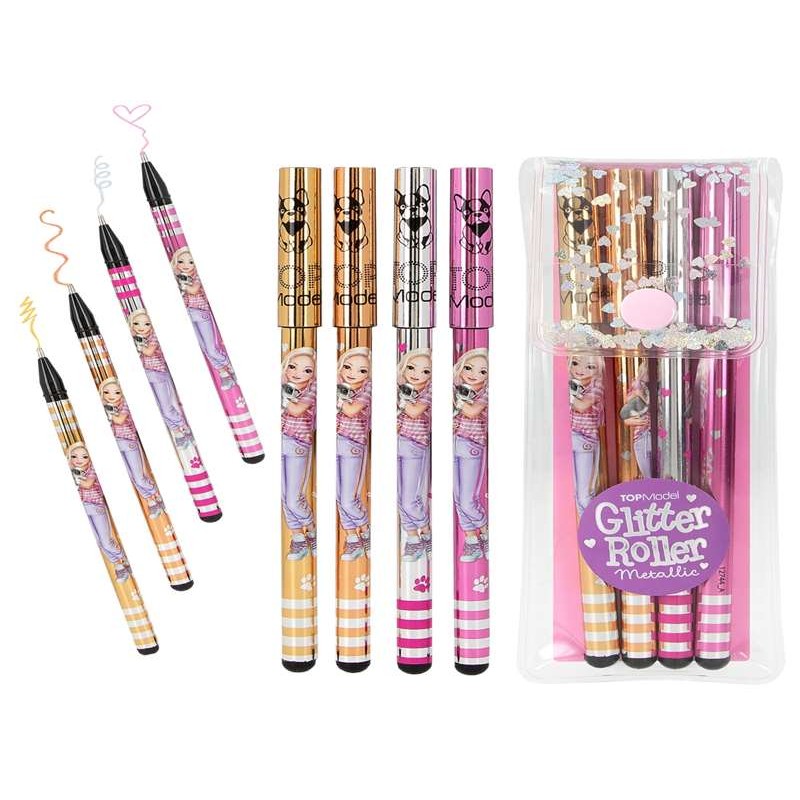 Para divertirse a lo grande con los rotuladores de TOPModel de purpurina metalizada color oro, plata, bronce y oro rosa. Los rotuladores están adornados con una preciosa imagen de una modelo con un perro y se venden en un estuche transparente con confeti en la tapa. Las minas no son recambiables.