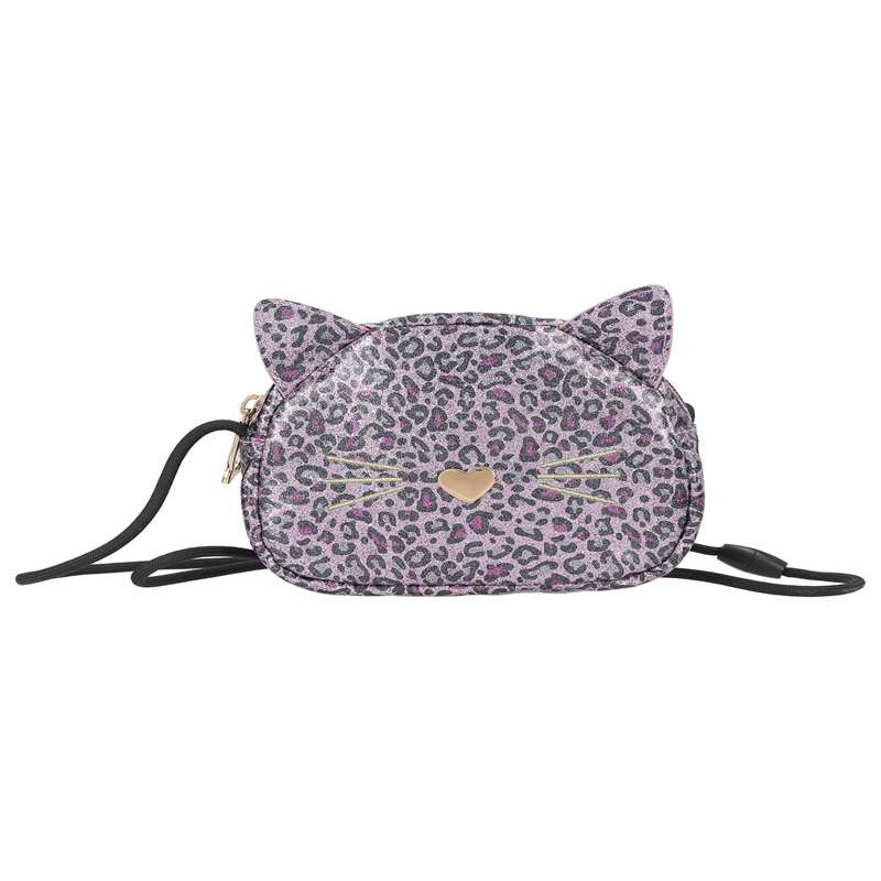 Rebel Kitty. Esta bandolera pequeña con forma de cara de gato de la nueva colección de diseño de TOPModel lleva estampado animal rosa brillante. Las orejitas de gato aplicadas, los bigotes bordados y la nariz hecha con una plaquita metálica con forma de corazón convierten este bolso en una auténtica monada. Para colgar lleva un cordón negro provisto de un sistema de seguridad que libera el cierre al recibir un tirón brusco.