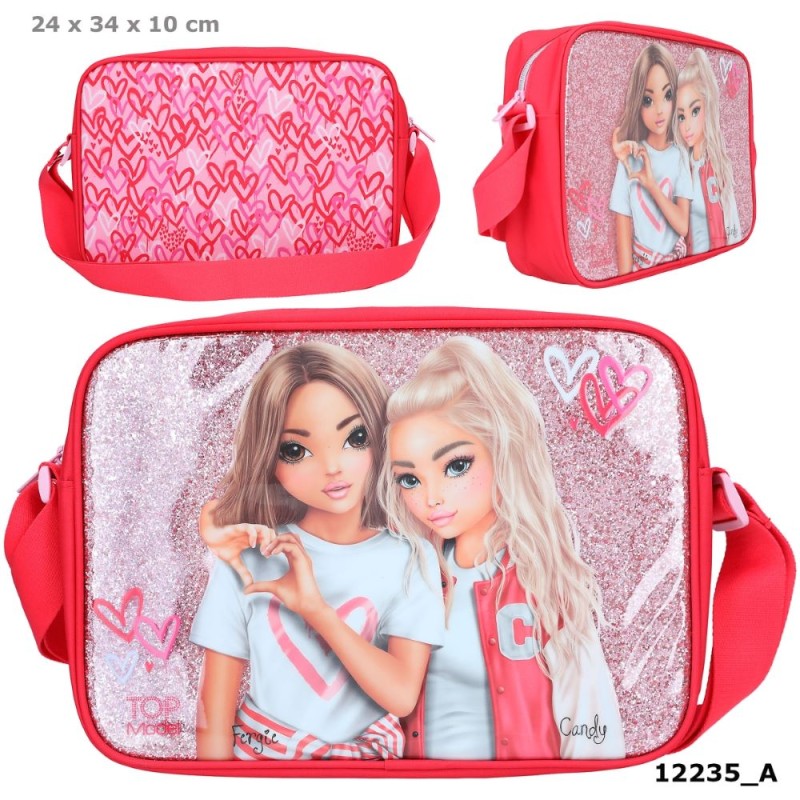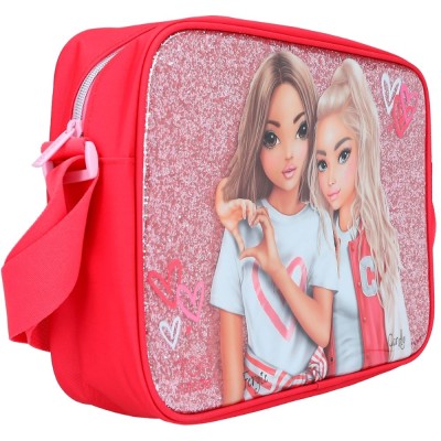 ¡Todo un encanto! El bolso bandolera grande One Love de TOPModel es un diseño que no pasa desapercibido gracias a la imagen de dos modelos de TOPModel sobre fondo de purpurina en la cara delantera y por su precioso estampado allover de corazones por la parte de atrás. La bandolera, del mismo color que el bolso, es ajustable. El amplio compartimento interior del bolso cuenta con un bolsillo extra con cierre de cremallera y un pequeño pongotodo extraíble. Material: poliéster 100 por 100; cara delantera: cloruro de polivinilo 100 por 100; interior: poliéster 100 por 100.