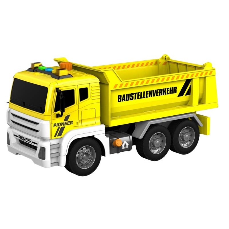 Camión de Construcción para realizar todas las obras que tu hijio quiera construir. No es un Camión de Contrucción corriente ya que emite sonido y luces para hacerlo mucho más realista. Además con su llamativo color amarillo irá llamando la atención allá por donde vaya. Necesita 3 pilas AG13 incluidas. Edad recomendada +3 años. Juguetoon. Ref.: 19-578