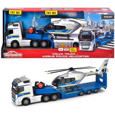 El camión de policía Volvo FH-16 viene con un remolque para transportar el helicóptero Airbus H135